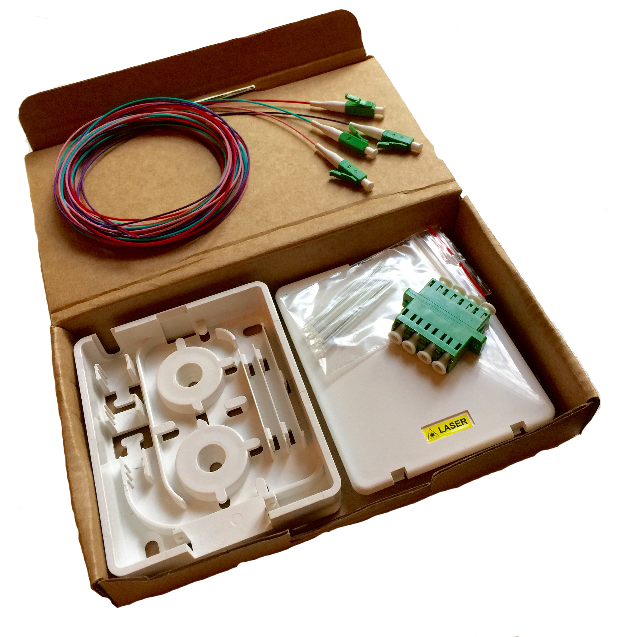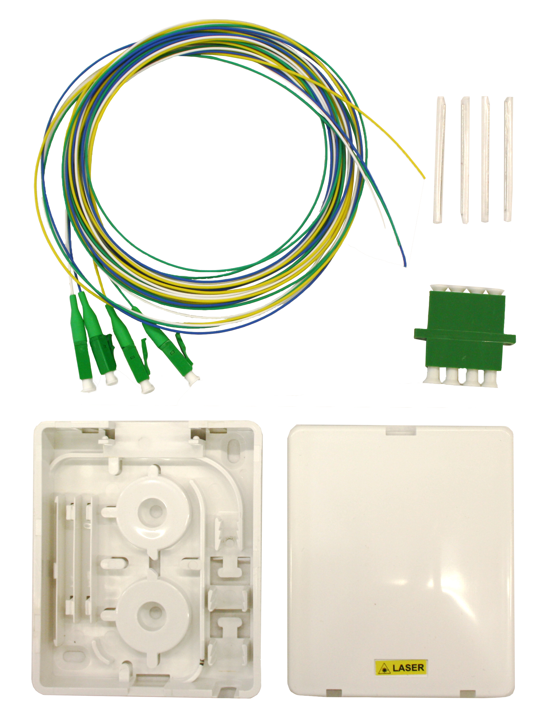 KO4PLCK on täydellinen kotijakamoon tarkoitettu optinen päätekotelokitti. Se helpottaa, yksinkertaistaa ja nopeuttaa tarvikkeiden hankintaa. Kitti sisältää kaikki kotijakamoon tarvittavat kuitujen päättämistarvikkeet.