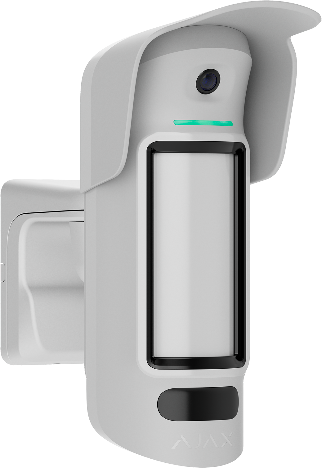 CurtainCam Outdoor HighMount (PhOD) Jeweller on verhotyyppinen ulkokäyttöön tarkoitettu langaton liikeilmaisin, jossa on sisäänrakennettu kamera tapahtumien kuvatodennusta varten.