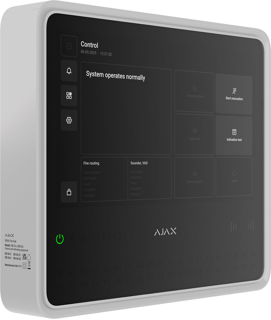 Ajax EN54 Fire Hub Jeweller on kosketusnäytöllinen keskuspaneeli, joka on suunniteltu paloturvallisuusjärjestelmän kokonaisvaltaiseen hallintaan. Se on helppo asentaa, yksinkertainen käyttää eikä vaadi paljon huoltoa.