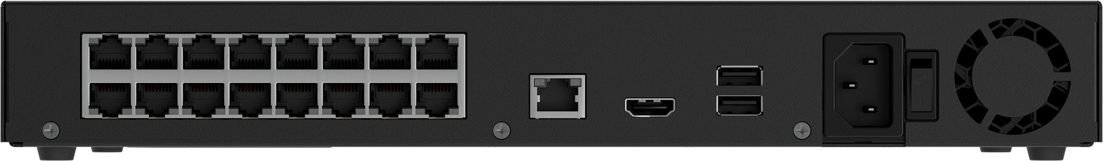 • 16 x PoE+ (802.3af/at) RJ45 Ethernet (10/100M), maks. 25 W/portti