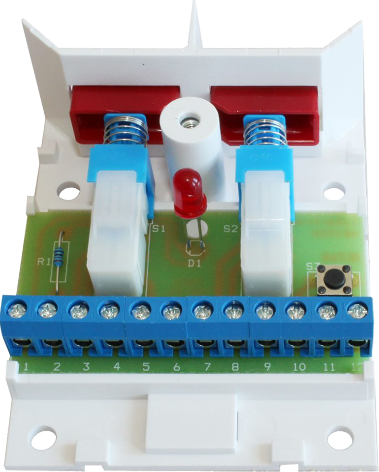Laitteessa on myös sisäänmeno sisäänrakennetun LED-merkkivalon ohjausta varten sekä kansisuojakytkin, joka hälyttää luvattomasta kotelon avaamisesta.