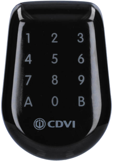 Pinta-asennettava standalone koodilukko on valmistettu kestävästä polykarbonaatista ja se on viimeistelty kiiltävän mustaksi.