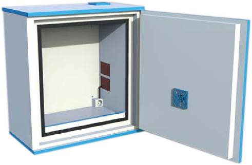 CBC Small -kaapissa on esiasennettu latauspistoke takaseinässä ja läpivientien paikka oikeassa kyljessä. Kaappi on asennettavissa seinälle mukana tulevilla varusteilla. Palonkestävyys on vähintään 30 minuuttia sekä ulkoa että sisältä alkavissa paloissa.