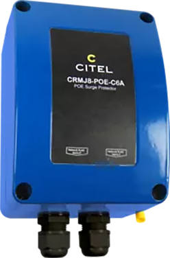Ulkokäyttöön soveltuva PoE-ylijännitesuoja, joka on suunniteltu suojaamaan PoE-kaapelointiin kytkettyjä laitteita hetkellisiltä ylijännitteiltä.