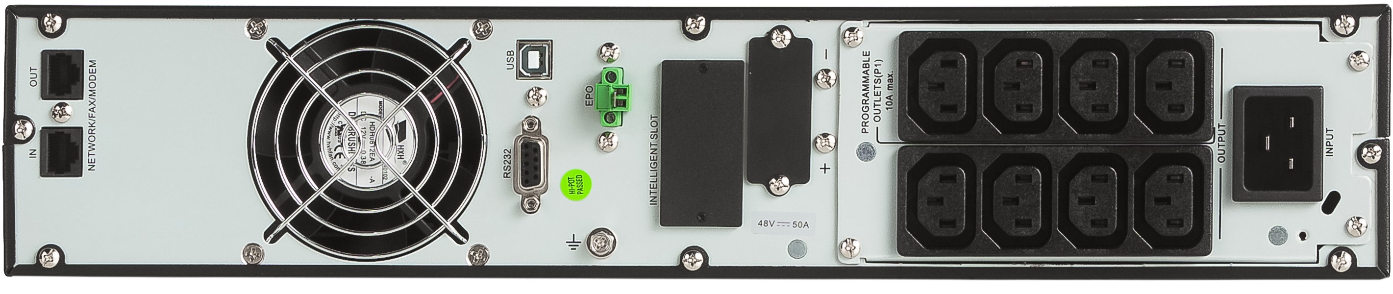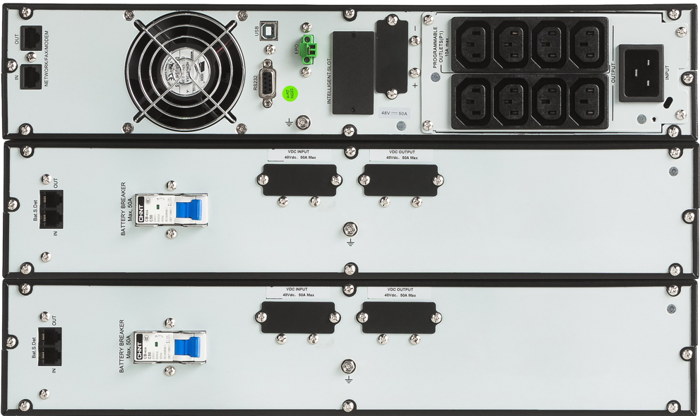 LCD-näyttö, ohjelmoitavat lähtöryhmät sekä laaja valikoima kommunikointiliitäntöjä (USB, RS232, SNMP, AS400) takaavat helpon hallinnan ja integroitavuuden IT-ympäristöihin.