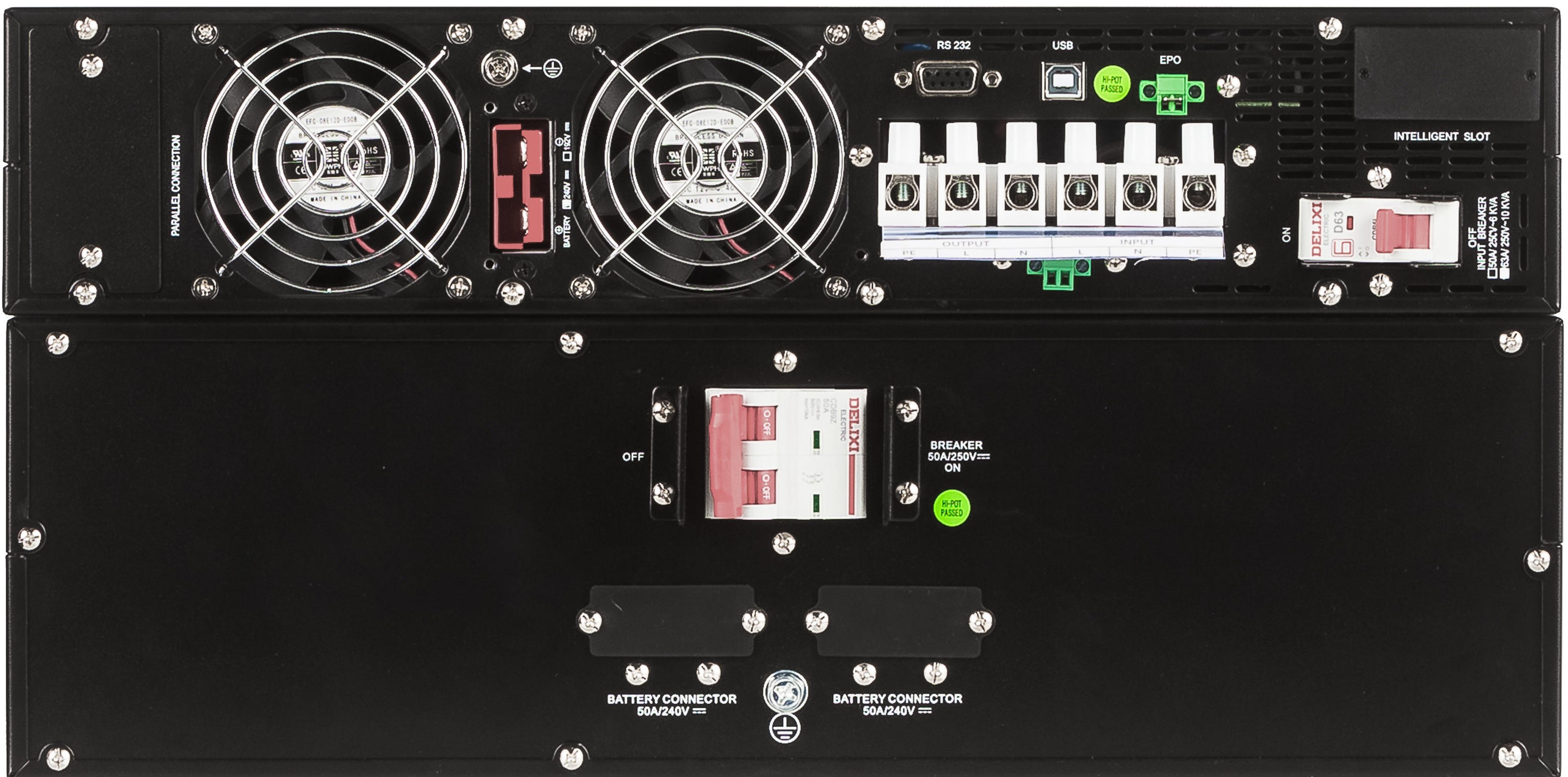 LCD-näyttö, ohjelmoitavat lähtöryhmät sekä laaja valikoima kommunikointiliitäntöjä (USB, RS232, SNMP, AS400) takaavat helpon hallinnan ja integroitavuuden IT-ympäristöihin.