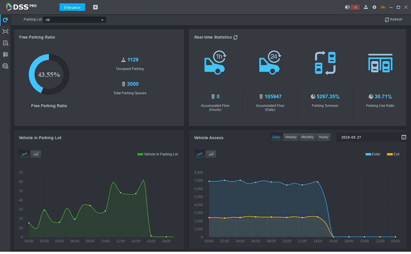 Pysäköintihallinnan mahdollistava toiminto Dahua DSS-ohjelmistoon.