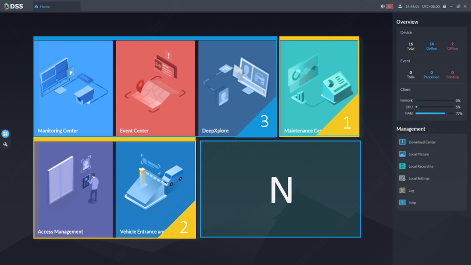 Maksuttomaan DSS Express V8 -ohjelmistoon sisältyy 64 videokanavaa. Mikäli tarvitset useampia kanavia, voit laajentaa ohjelmistoa jopa 256 kanavaan hankkimalla lisää kanavalisenssejä. Maksullisella lisenssillä saat käyttöösi monia muitakin ominaisuuksia, kuten integroinnin kulunvalvontaan kasvontunnistuksineen.