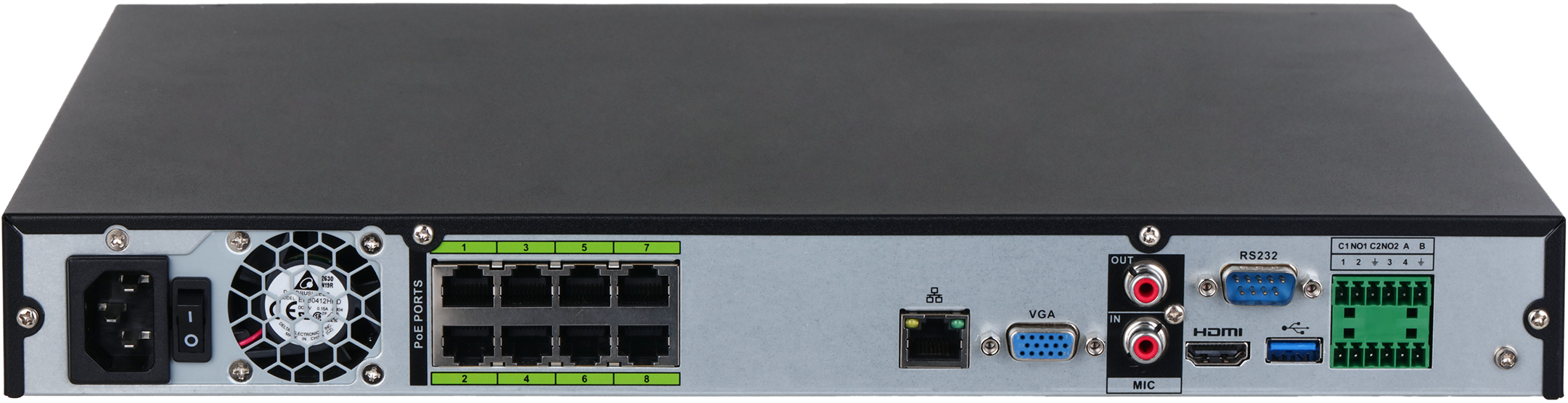 8-kanavainen PoE-tallennin ePoE-porteilla ja kahdella kiintolevypaikalla