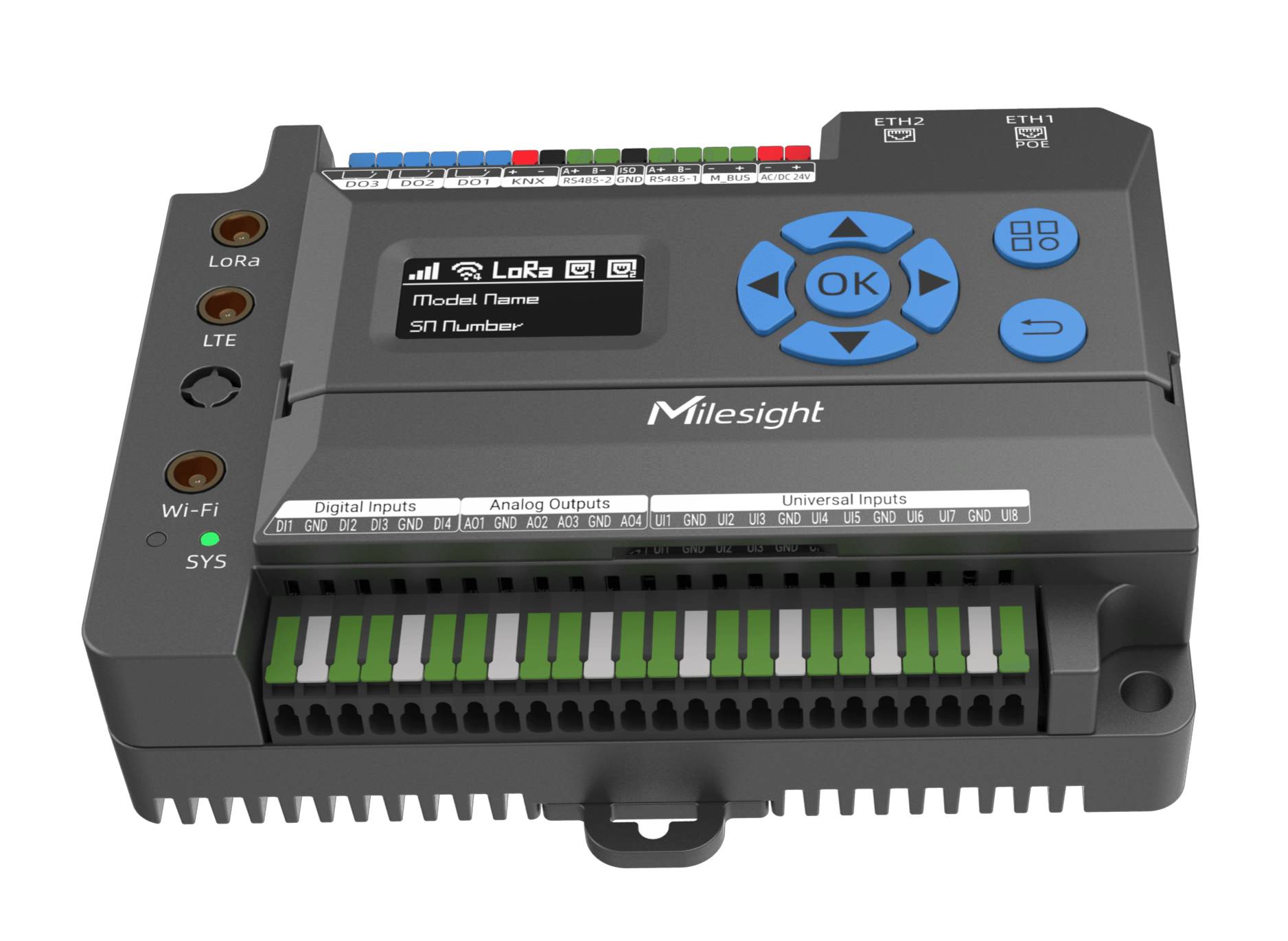 • Monipuoliset I/O-liitännät: DI,DO,AI,AO, RS485-, KNX-, LoRaWAN-, WiFi- ja Ethernet-laitteet