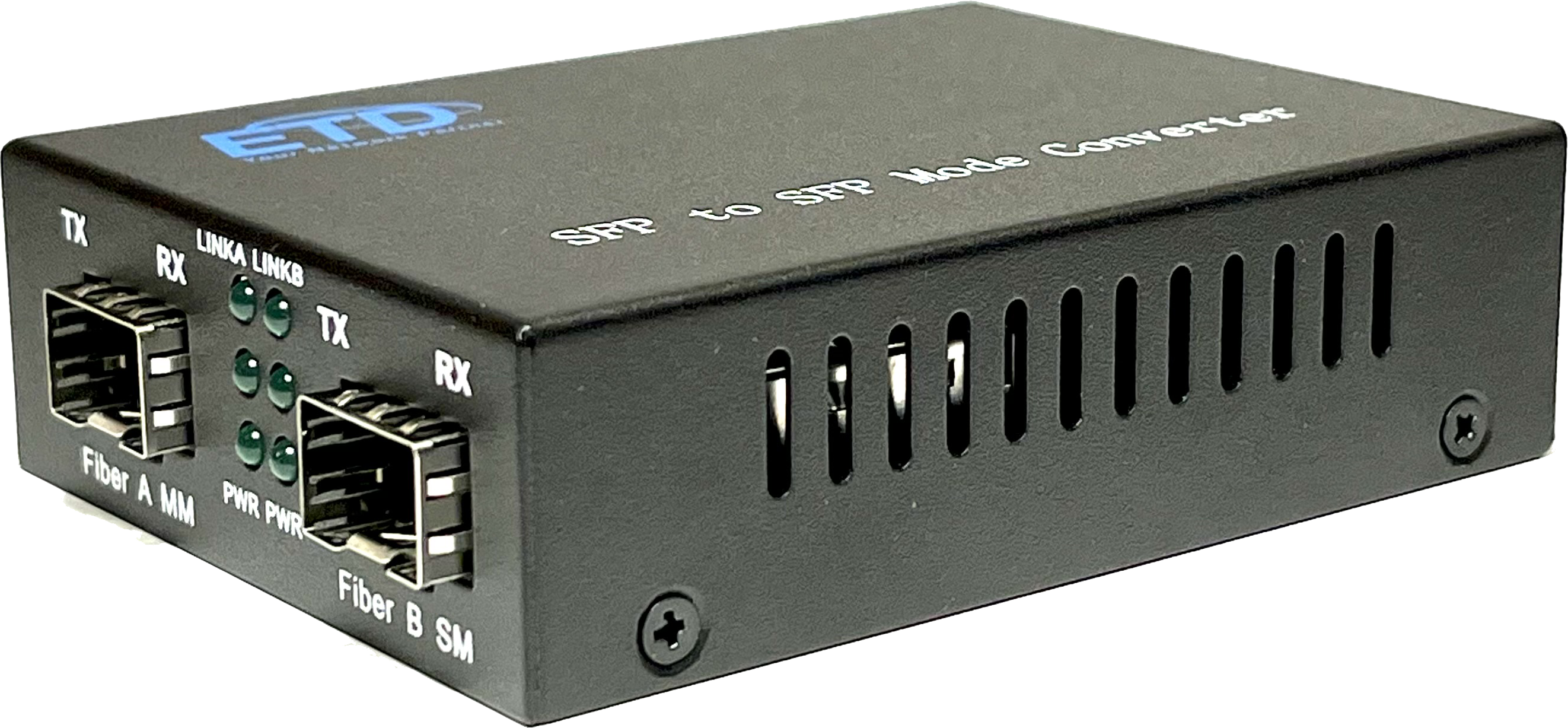Muuntimessa on kaksi avointa SFP-paikkaa 1000Base-SX (monimuoto) tai 1000Base-LX (yksimuoto) kuiduille.