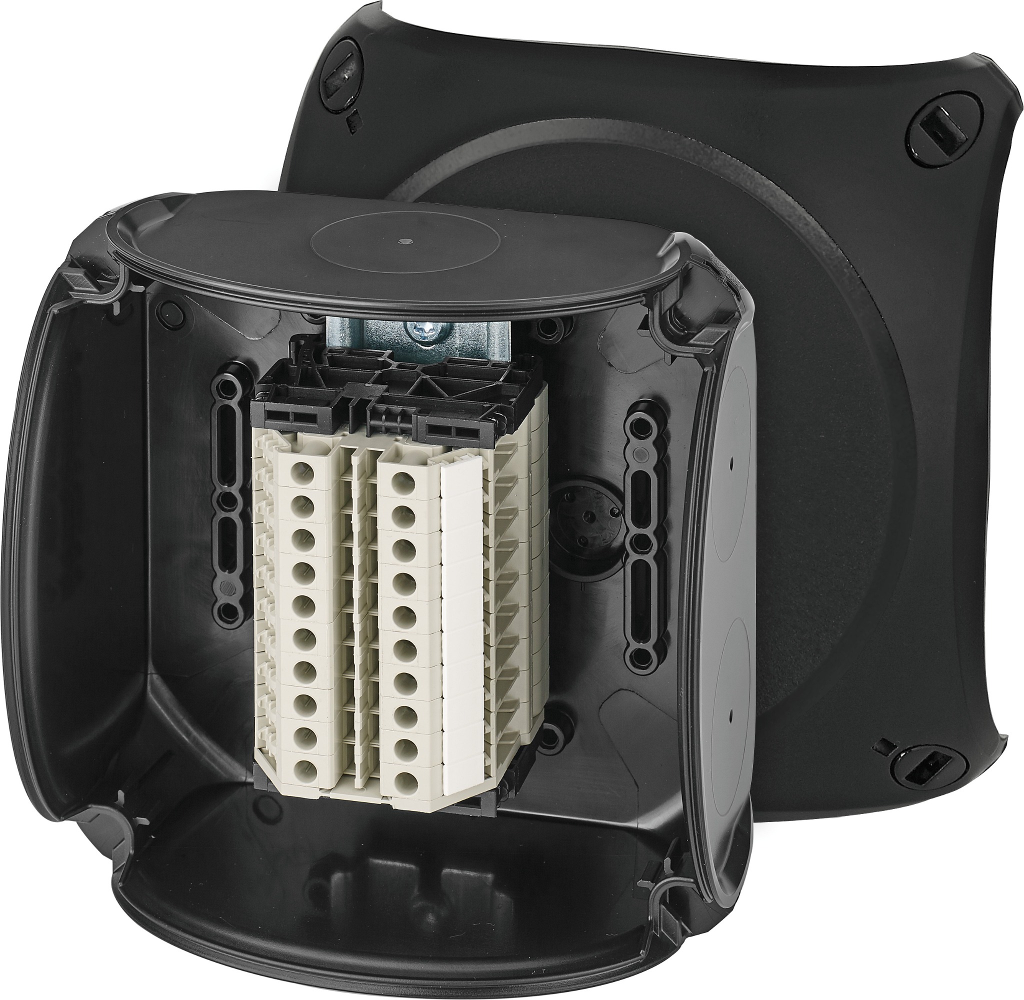 Jakorasia riviliittimillä käytettäväksi räjähdysvaarallisissa tiloissa vyöhykkeillä 2 ja 22. Kotelon seinät ilman läpilyöntiaihioita.