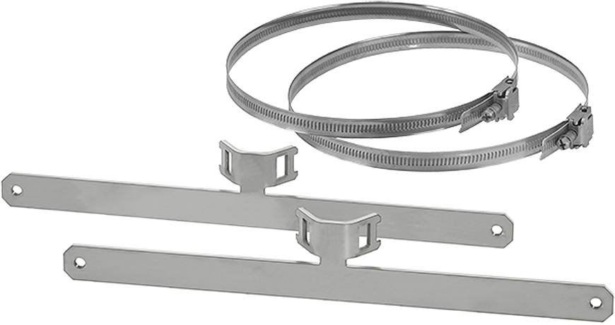 Kiristyspannat sopivat pylväspaksuuksille 60-150 mm. Mukana tulee myös ruuvit, joilla kiinnike ruuvataan kotelon takaseinään. Ruuvit eivät mene takaseinän läpi, joten kiinnikkeellä ei ole vaikutusta kotelon tiiviyteen.