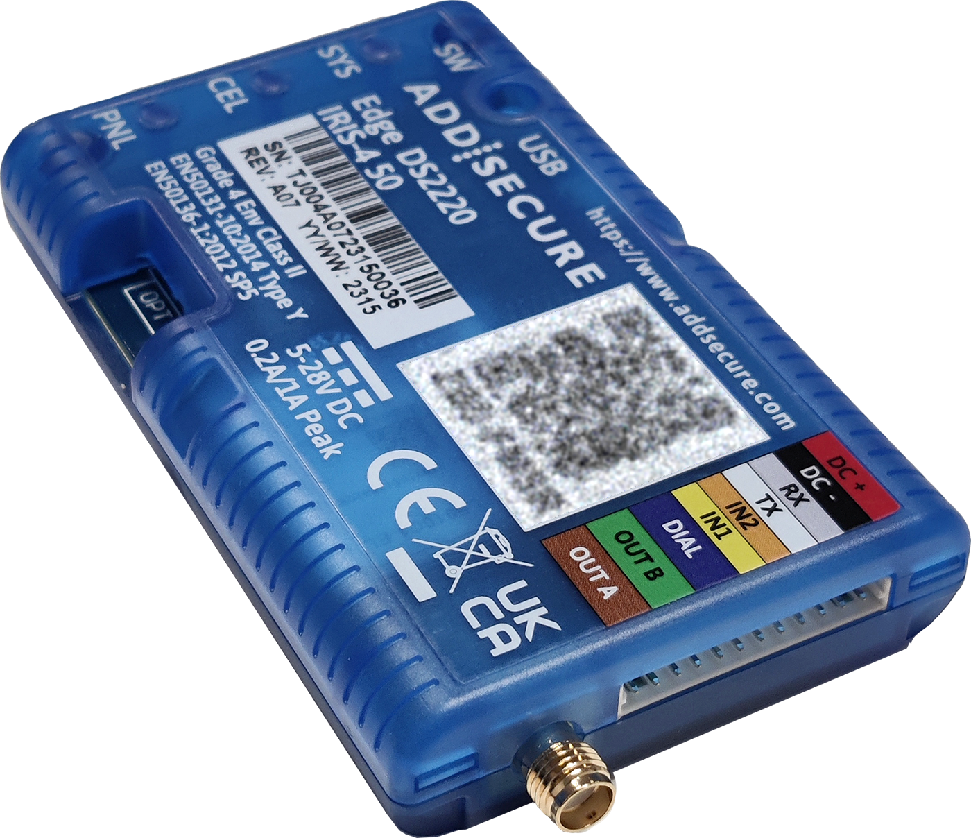 IRIS-4/50 sisältää AddSecure LINK eSIM-kortin, joka aktivoidaan AddSecuren palvelussa. Tiedonsiirtopalvelu on kuukausimaksullinen ja laskutetaan 12 kk kerrallaan, ensimmäisen kerran aktivoinnin yhteydessä.
