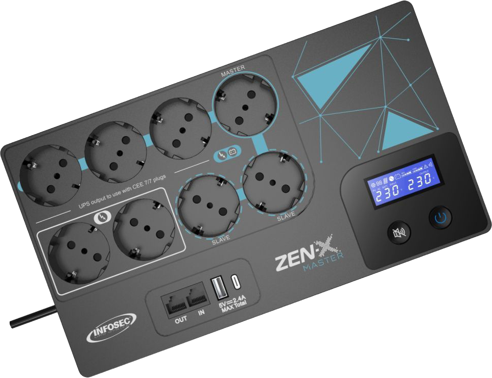 Zen-X Masterin Eco-toiminto mahdollistaa energian tehokkaamman hallinnan ja estää käyttämättömiä laitteita kuluttamasta sähköä tarpeettomasti pidentäen varakäyntiaikaa. Pääpistorasia (Master) ohjaa kahta Slave-pistorasiaa, joten Master-laitteen sammuessa tai mennessä virransäästötilaan virta katkaistaan myös Slave-pistokkeista.
