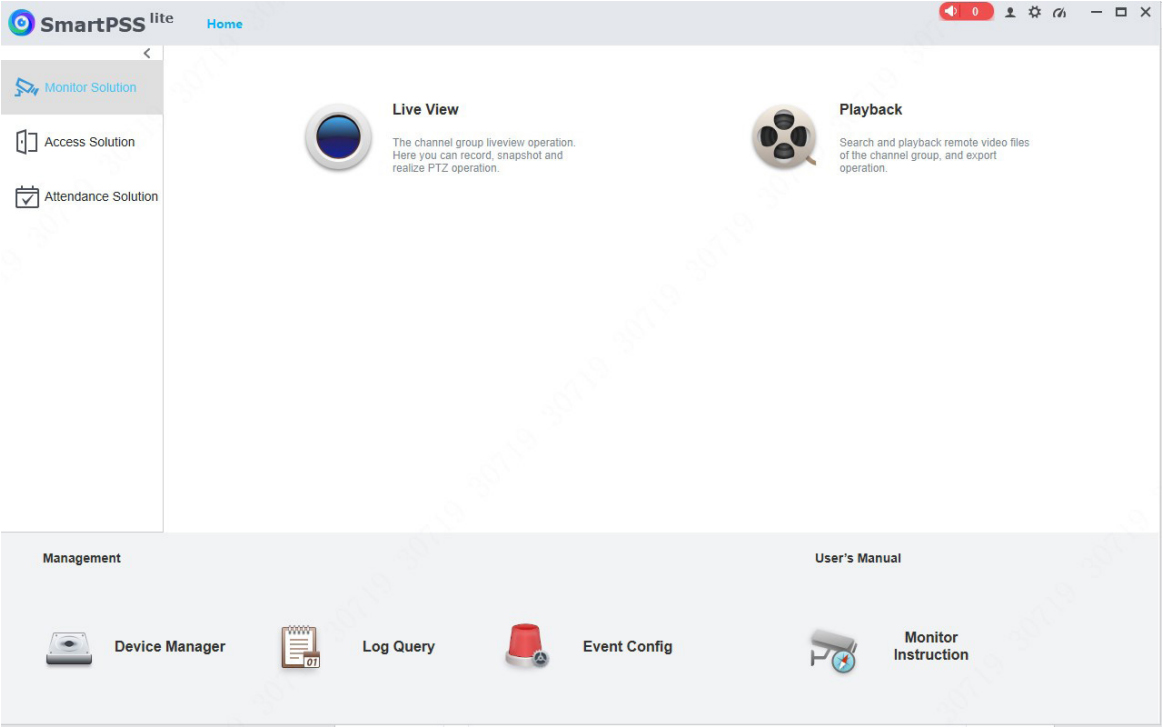 SmartPSS Lite -ohjelmisto on suunniteltu Dahuan laitteiden, kuten IP-kameroiden, tallentimien (NVR, XVR), kulunvalvontalaitteiden (ASI, ASC, ASG, ASR) ja video-ovipuhelinlaitteiden (VTO, VTH, VTS), konfigurointiin ja hallintaan.