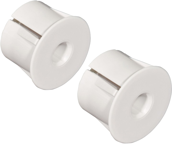 Muovikiinnikkeet magneettikoskettimen uppoasennukseen ei-magneettisiin ovi- ja ikkunakarmeihin.