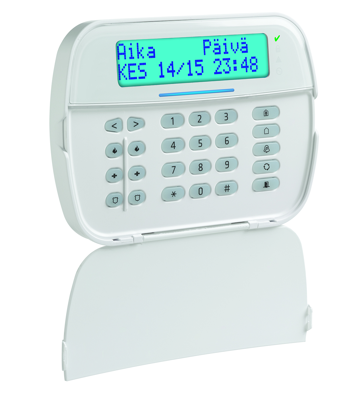 Näppäimistössä on 5 ohjelmoitavaa toimintonäppäintä ja 3 erillistä paniikkipainiketta. Näppäimistön tekstit voidaan vapaasti ohjelmoida ja taustavaloa sekä summeria voidaan säätää sopivaksi. Lisäksi näppäimistössä on eriaisia ovikellotoimintoja.