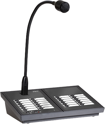 IPG-sarjan mikrofoniasema mahdollistaa ääni-ilmoitusten hallinnan PA-järjestelmissä. IPG24 on varustettu 24:lla ohjelmoitavalla painikkeella alueiden tai äänilähteiden valintaa varten.