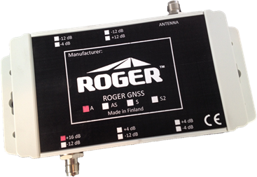 ROGER GPS linjavahvistinta käytetään vahvistamaan signaali pidemmissä kaapelivedoissa tai yhdessä signaalin jakajan kanssa. Vahvistin tuottaa +16 db vahvistuksen GPS L1/L2/GLONASS/GALILEO -taajuuksilla. Vahvistin suodattaa muut signaalitaajuudet automaattisesti.