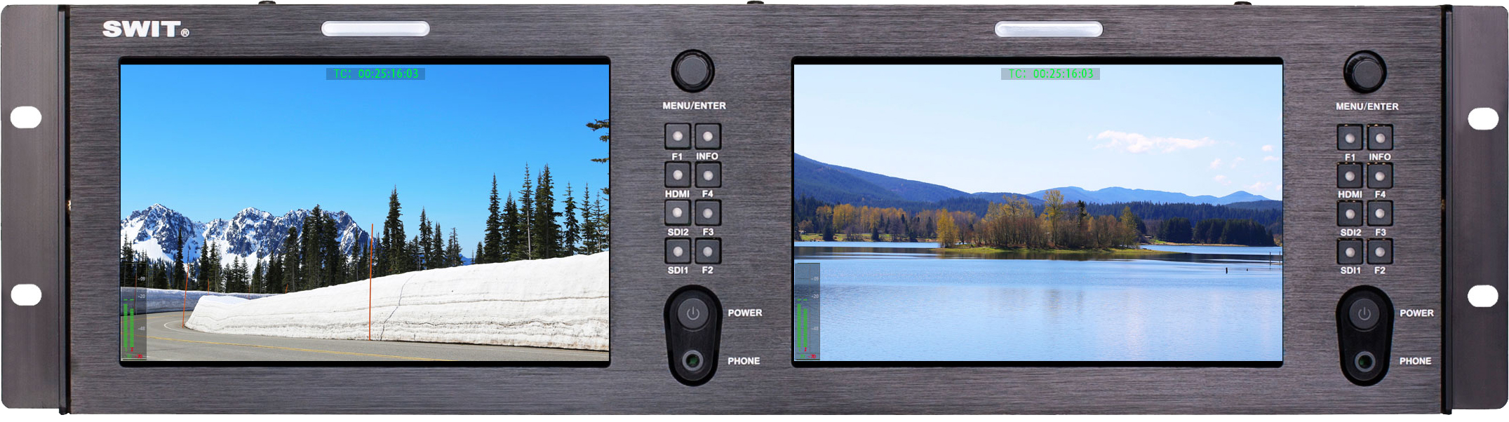 Kahdella heijastamattomalla 7" Full HD-näytöllä varustettu 19" räkkiin asennettava monitori HDMI 2.0 -tuloilla ja -lähdöillä