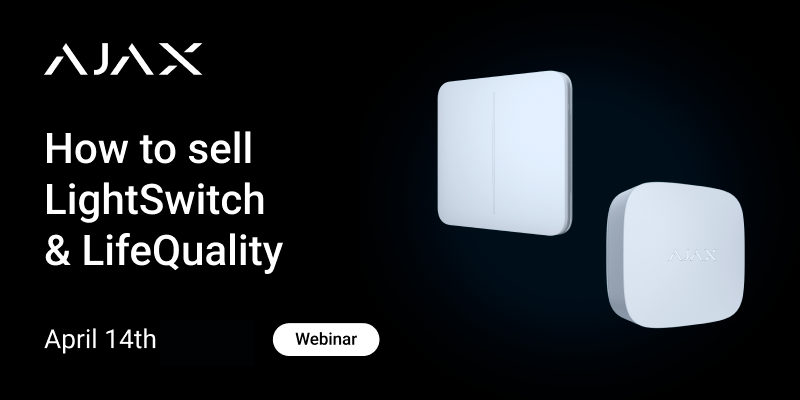 Koska tämäntyyppiset laitteet eivät ole perinteisesti osana turvajärjestelmiä, Ajax järjestää nyt myyntikoulutuswebinaarin: Kuinka, missä ja kenelle myydä LightSwitch ja LifeQuality -ratkaisuja.